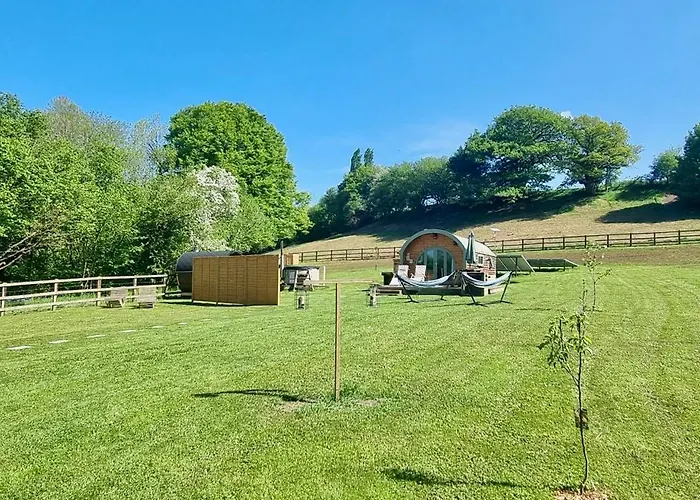 The Mainstay Pod At Hidden Wood Glamping villa has a fully furnished kitchen with a refrigerator, an oven, and kitchenware included. The nearest Bristol airport is 60 km away from the Corsley accommodation.